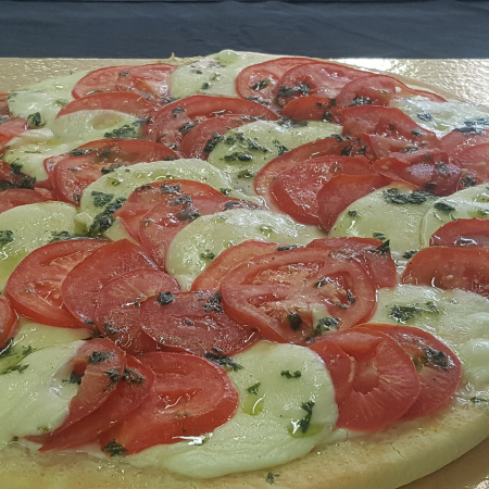 tomate, mozzarella, sauce pistou maison