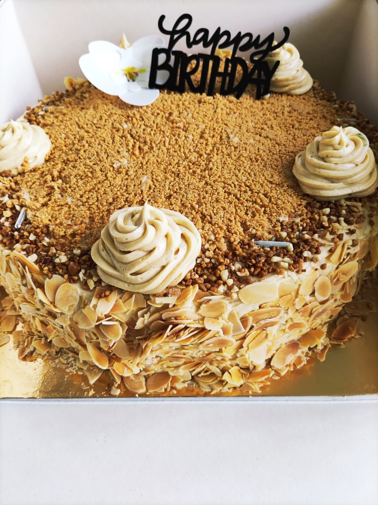 Contient : Céréales contenant du gluten (blé), œufs , fruits à coques(amandes et noisettes caramélisées)